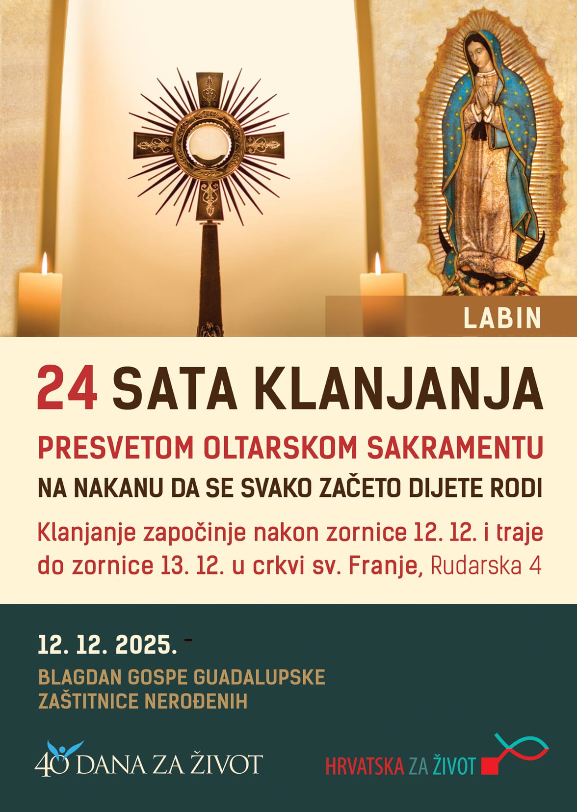 U crkvi Sv. Franje u Podlabinu započinje 24-satno klanjanje Presvetom Oltarskom Sakramentu 12.12.2025. nakon zornice.