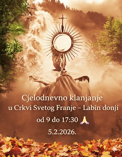 U četvrtak, 5.2., je u crkvi Sv. Franje izloženo Presveto od 9:00 do 17:30 sati.